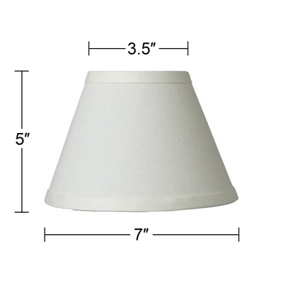 From the Springcrest brand, this set of six traditional linen empire chandelier shades are a clean, classic update for any candelabra fixture. They boast warm cream-colored linen fabric with white finish clip-on fitters for easy installation. These shades are designed for use with candelabra light bulbs.