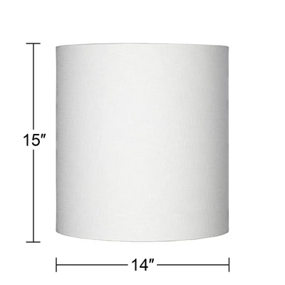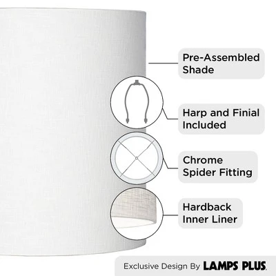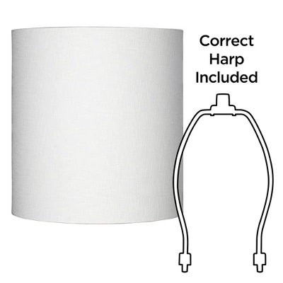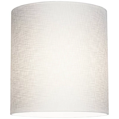 - Tall drum shade in a white linen blend fabric with rolled edges. Hardback poly styrene inner liner.