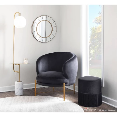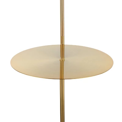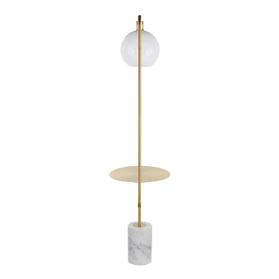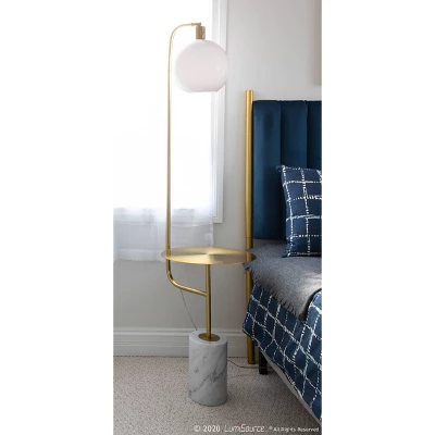 A mix of marble and metal creates a contemporary look that will fit any room. The Symbol Floor Lamp by Lumisource is the perfect size for smaller spaces. With a gold metal attached table, white round sconce, and a white marble base, the Symbol Floor Lamp will look great next to any sofa, accent chair, or even in a bedroom.