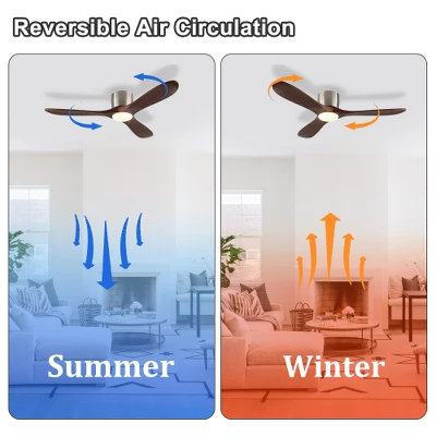 52-inch Lighted Ceiling Fan Color: Light Walnut Blades/Sand Nickel Body Blade Material: Solid Wood Blade Size: 52-inch Source: 18W LED Special Features: Timer Room Types: Farmhouse, Dining Room, Country Style, Garage, Living Room, Bedroom, Home Office, Kids’ Room, Balcony, Cabinet, Garage, Garden, Home, Shop, Restaurant Reversible airflow function 2 airflow modes: downward cool airflow in summer and upward airflow in winter to promote air circulation and save energy. Adjustable light colors You can freely adjust the brightness of the fan light and easily save your favorite settings with the remote control. The color temperature range is 3000K to 6000K. 6 speed settings and quiet operation This ceiling fan offers six different wind speed options, allowing you to select the ideal airflow intensity for your comfort needs. In addition, modern ceiling fans operate with extremely low noise levels, ensuring a quiet environment.