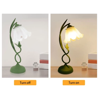 Brighten your home with this exquisite flower table lamp, a perfect fusion of artistic beauty and everyday practicality. Featuring a stunning hand-painted glass design in the shape of a delicate flower with leaves and butterflies, it serves as a captivating decorative piece that adds a touch of nature and color to any room. Constructed from durable iron and high-quality glass with a smooth baking varnish finish, this lamp is built to last. Its stable, anti-slip base and compatibility with dimmable bulbs (up to 60W, not included) make it a safe, versatile, and charming lighting solution for your bedside, living room, or office.